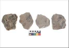 | Description / विवरण | These are n 4 of worked tools. They are tapering at one end and have sharp edges. Some have flat base and show dominant irregular scar pattern and broken tip. |