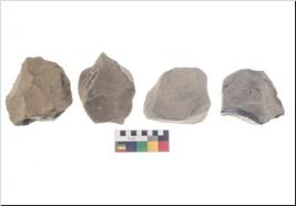 | Description / विवरण | These are n 4 of worked tools. They are tapering at one end and have sharp edges. Some have flat base and show dominant irregular scar pattern. |