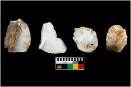 | Description / विवरण | There are n 4 of utilized worked cores. They show multidirectional irregular dominant scar pattern. One has a broken tip. |