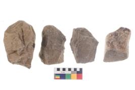 | Description / विवरण | These are n 4 of worked tools. They are tapering at one end and have sharp edges. They have flat base and show dominant irregular scar pattern. |