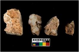 | Description / विवरण | There are n 4 of utilized worked cores. They show multidirectional irregular dominant scar pattern. Two are tapering on one end. |