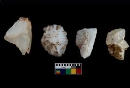 | Description / विवरण | There are n 4 of utilized worked cores. They show multidirectional irregular dominant scar pattern. Some are tapering at one end. |
