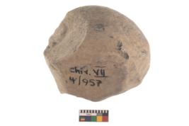 | Description / विवरण | The specimen is utilized worked. One edge is broken. It shows irregular dominant scar pattern on the dorsal and ventral side. |