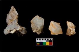 | Description / विवरण | There are n 4 of utilized worked cores. They show multidirectional irregular dominant scar pattern. Two are tapering on one end. |