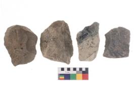 | Description / विवरण | These are n 4 of worked tools. They are tapering at one end and have sharp edges. Some have round base and some have flat base. They show dominant irregular scar pattern. |