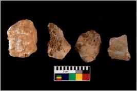 | Description / विवरण | There are n 4 of utilized worked cores. They show multidirectional irregular dominant scar pattern. One is tapering on one end. |