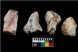 | Description / विवरण | There are n 4 of utilized worked cores. There are multi directional irregular dominant scar pattern on both dorsal and ventral side. They are tapering at one end and have sharp edges. |