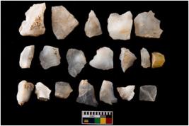 | Description / विवरण | There are n 20 worked flakes; all are having sharp edges. Sone are tapering at one end whereas some have flat base.All are uneven in shape and size. None of them show crested ridge flakes. |