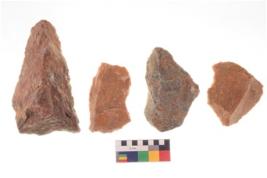 | Description / विवरण | There are n 4 utilized worked flakes; they show multidirectional irregular scar pattern on both dorsal and ventral face of the flakes. Two of them are tapering at one end. |