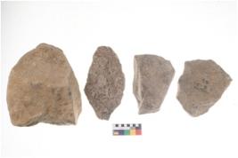| Description / विवरण | These are n 4 of worked tools. They are tapering at one end and have sharp edges. Some have round whereas some have flat base. They show irregular scar pattern. |