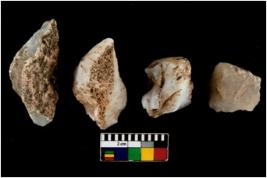 | Description / विवरण | There are n 4 of utilized worked cores. They show multidirectional irregular dominant scar pattern. Two are tapering on one end. |