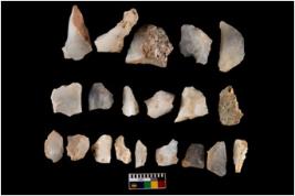| Description / विवरण | There are n 20 worked flakes; all are having sharp edges. Sone are tapering at one end whereas some have flat base.All are uneven in shape and size. None of them show crested ridge flakes. |