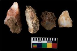| Description / विवरण | There are n 4 of utilized worked cores. They show multidirectional irregular scar pattern. Three are tapering on one end. |