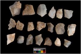 | Description / विवरण | There are n 20 worked flakes; all are having sharp edges. Sone are tapering at one end whereas some have flat base.All are uneven in shape and size. None of them show crested ridge flakes. |
