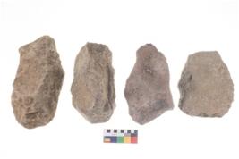 | Description / विवरण | These are n 4 of worked tools. They are tapering at one end and have sharp edges. They have round base and show dominant irregular scar pattern. |