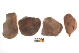 | Description / विवरण | There are n 4 utilized worked handaxes; they show multidirectional irregular scar pattern on both dorsal and ventral face. |