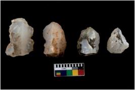 | Description / विवरण | There are n 4 of utilized worked cores. There are multidirectional irregular dominant scar pattern on both dorsal and ventral side. They have sharp edges and some are tapering at one end. |