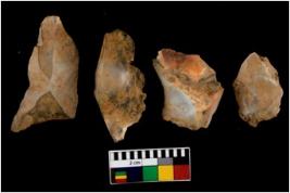 | Description / विवरण | There are n 4 of utilized worked cores. They show multidirectional irregular dominant scar pattern and are tapering on one end. |
