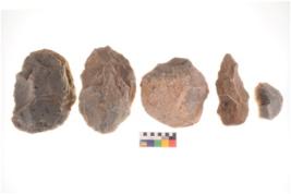 | Description / विवरण | There are n 5 utilized worked handaxes; they show multidirectional irregular scar pattern on both dorsal and ventral face. |