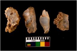 | Description / विवरण | There are n 4 of utilized worked cores. They show multidirectional irregular scar pattern. Three are tapering on one end. |