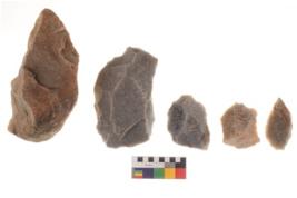 | Description / विवरण | There are n 5 utilized worked handaxes; they show multidirectional irregular scar pattern on both dorsal and ventral face. |