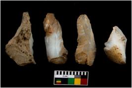 | Description / विवरण | There are n 4 of utilized worked cores. They show multidirectional irregular dominant scar pattern. Three are tapering on one end. All are having sharp edges. |