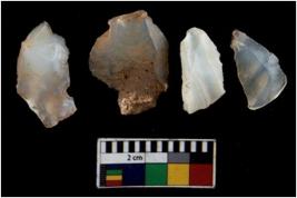 | Description / विवरण | There are n 4 of utilized worked cores. They show multidirectional irregular scar pattern. Three are tapering on one end. |