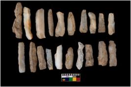 | Description / विवरण | There are n 20 microliths. All blades have retouched sides. Some of them have flat base and blunted edges. Few are tapering at one end. |