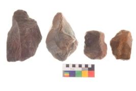 | Description / विवरण | There are n 4 utilized worked flakes; they show multidirectional irregular scar pattern on both dorsal and ventral face of the flakes. Two are tapering at one end. All are having sharp edges. |