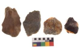 | Description / विवरण | There are n 4 utilized worked flakes; they show multidirectional irregular scar pattern on both dorsal and ventral face of the flakes. Two are having sharp edges whereas two are blunt. |
