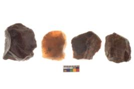 | Description / विवरण | There are n 4 utilized worked flakes; they show multidirectional irregular scar pattern on both dorsal and ventral face of the flakes. Three of them have flat base. All are having sharp edges. |