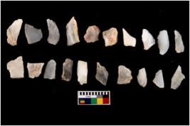 | Description / विवरण | There are n 20 worked flakes; all are having sharp edges. Sone are tapering at one end whereas some have flat base.All are uneven in shape and size. None of them show crested ridge flakes. |
