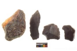 | Description / विवरण | There are n 4 utilized worked flakes; they show multidirectional irregular scar pattern on both dorsal and ventral face of the flakes.Two of them are tapering at one end and having sharp edges. |