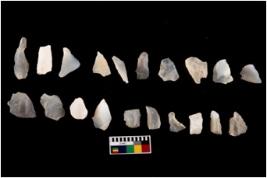 | Description / विवरण | There are n 20 worked flakes; all are having sharp edges. Sone are tapering at one end whereas some have flat base.All are uneven in shape and size. None of them show crested ridge flakes. |