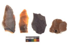 | Description / विवरण | There are n 4 utilized worked flakes; they show multidirectional irregular scar pattern on both dorsal and ventral face of the flakes. All are tapering at one end and having sharp edges. |