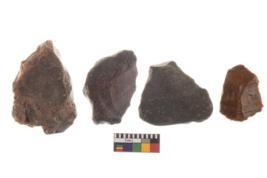 | Description / विवरण | There are n 4 utilized worked flakes; they show multidirectional irregular scar pattern on both dorsal and ventral face of the flakes. Three of them are tapering at one end. All are having sharp edges. |