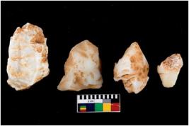 | Description / विवरण | There are n 4 of utilized worked cores. They show multidirectional irregular dominant scar pattern. Two are tapering on one end. |