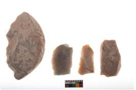 | Description / विवरण | There are n 4 utilized worked flakes; they show multidirectional irregular scar pattern on both dorsal and ventral face of the flakes.Two are tapering at one end and having sharp edges. |