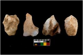 | Description / विवरण | There are n 4 of utilized worked cores. They show multidirectional irregular dominant scar pattern. two are tapering on one end. |