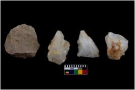 | Description / विवरण | There are n 4 of intact utilized worked cores. Three are of quartz and one is of chert. Two of them have one end tapering. |