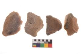 | Description / विवरण | There are n 4 utilized worked flakes; they show multidirectional irregular scar pattern on both dorsal and ventral face of the flakes.All are tapering at one end and having sharp edges. |