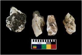 | Description / विवरण | There are n 4 of utilized worked cores. They show multidirectional irregular scar pattern. One has a broken tip. |