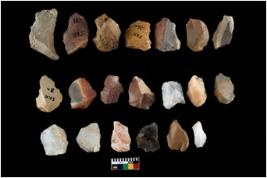 | Description / विवरण | There are n 20 flakes; five of Quartz, 2 Chalcedony and 13 Chert They are in average working condition,There are signs of retouchings as well as damages. |