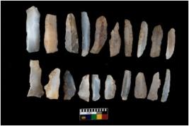 | Description / विवरण | There are n 20 microliths. All blades have retouched sides. Some of them have flat base and blunted edges. Few are tapering at one end. |