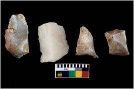 | Description / विवरण | There are n 4 of utilized worked cores. They show multidirectional irregular dominant scar pattern. One is tapering on one end. |