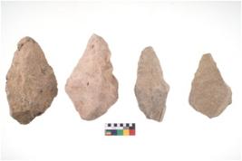 | Description / विवरण | These are n 4 of worked tools. They are tapering at one end and have sharp edges. They have round base and show dominant irregular scar pattern. |