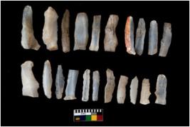 | Description / विवरण | There are n 20 microliths. All blades have retouched sides. Some of them have flat base and blunted edges. Few are tapering at one end. |