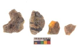 | Description / विवरण | There are n 4 utilized worked flakes; they show multidirectional irregular scar pattern on both dorsal and ventral face of the flakes.One is tapering at one end and having sharp edges. |