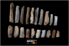 | Description / विवरण | There are n 20 microliths. All blades have retouched sides. Some of them have flat base and blunted edges. Few are tapering at one end. |