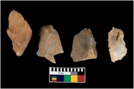 | Description / विवरण | There are n 4 of utilized worked cores. They show multidirectional irregular dominant scar pattern. One is tapering on one end. |
